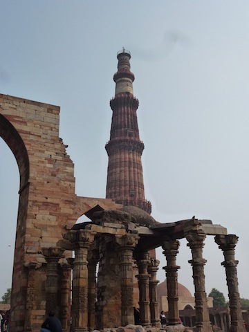Metro to Qtab Mina and the first haggle of the day. We ended up at R300 for a taxi to take us to 4 sites in a specific order. I don’t think it was a translation issue but we ended where I wanted to start and missed one in the middle. The driver obviously didn’t want to wait for us at Qtab Mina as he knew it would take the longest and we had also stopped to pick up his brother. He then asked for a tip. HAB (How about b*****ks!). Interesting places and where the World Heritage Organisation is involved they are well maintained and being renovated. Where a Maharaja or similar is involved, all the entrance money tends to be ploughed back into the site. Where the Indian Government is involved, it’s usually run down with a haggling watchman. The huge tower and mosque complex at Qtab Mina is a fantastic place, as is the nearby stepwell that needs some (government) work doing. Another tuktuk to Humayun’s tomb which is in the midst of renovation work and has a certain amount of green tarpaulin draped on the outside. Impressive from the outside but not much on the inside. Back to the tuktuk and twice round India Gate before we could get a photo. No stopping, serious barriers and a heavy police presence. Onwards to Connaught Place where we were set down. We walked almost halfway round, found it a all a bit incongruous, and dived back down the Metro to Chandni Chowk and bustling, crowded Old Delhi. We walked around for an hour or so without seeing a paleface or particularly paying attention as to where we were going. Bought some spices and suddenly it was dark and we were lost. As it was getting close to dinner time we decided to try and find a restaurant we had picked out on the Internet and in a guidebook. Rather than end up with a driver that didn’t know, couldn’t read or ripped us off we asked a policeman. A very nice policeman who grabbed us a cycle rickshaw, made sure he knew where we were going and fixed a price of R60 (75p). Poor sod trying to pedal in stop-start heavy traffic and he didn’t seem well. He must have struggled for at least 3km so despite the lecture from the policeman not to pay more we gave him double and were rewarded with a huge smile.